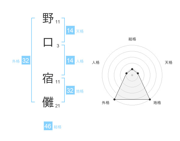 野口 宿儺さんの総格は46画の1点!