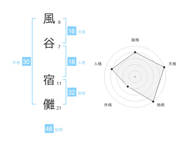 風谷 宿儺さんの総格は48画の4点!