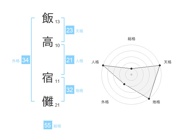 飯高 宿儺さんの総格は55画の1点!