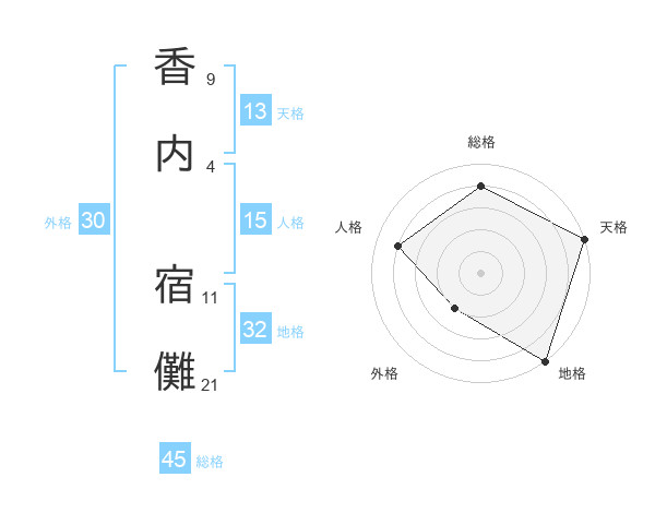 香内 宿儺さんの総格は45画の4点!