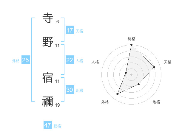 寺野 宿禰さんを姓名の画数から五運を鑑定