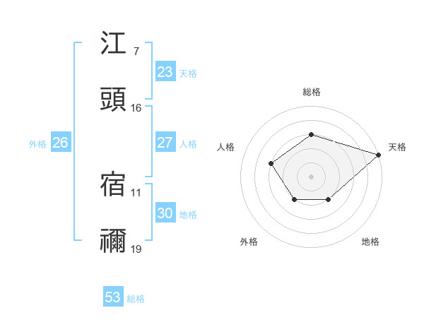 江頭 宿禰さんを姓名の画数から五運を鑑定
