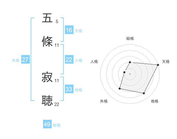 五條 寂聴さんの総格は49画の2点!