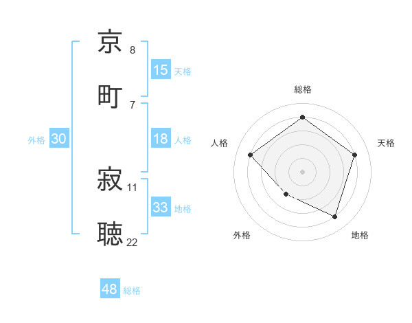 京町 寂聴さんの総格は48画の4点!