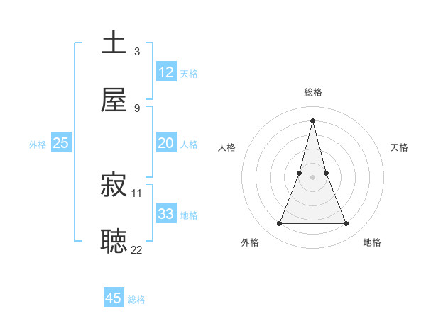 土屋 寂聴さんの総格は45画の4点!