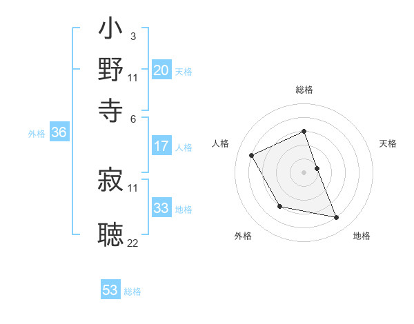 小野寺 寂聴さんの総格は53画の3点!