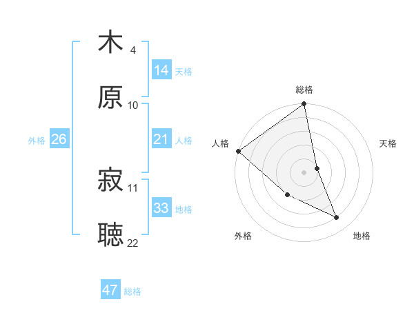 木原 寂聴さんの総格は47画の5点!