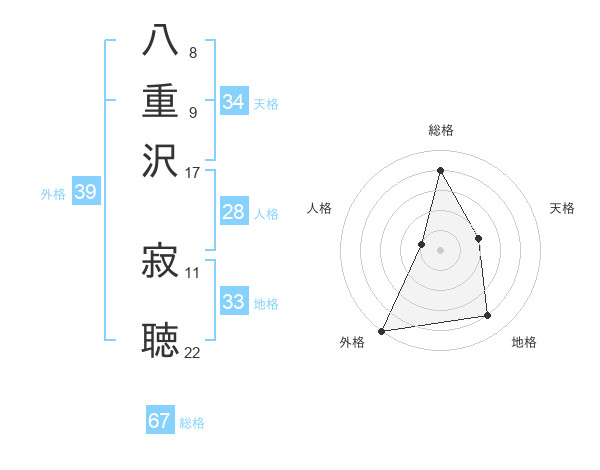八重沢 寂聴さんの外格は39画の5点!