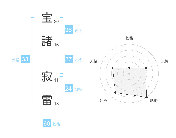 宝諸 寂雷さんを姓名の画数から五運を鑑定