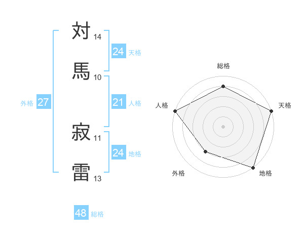対馬 寂雷さんを姓名の画数から五運を鑑定