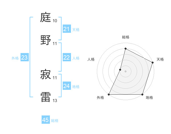 庭野 寂雷さんの総格は45画の4点!