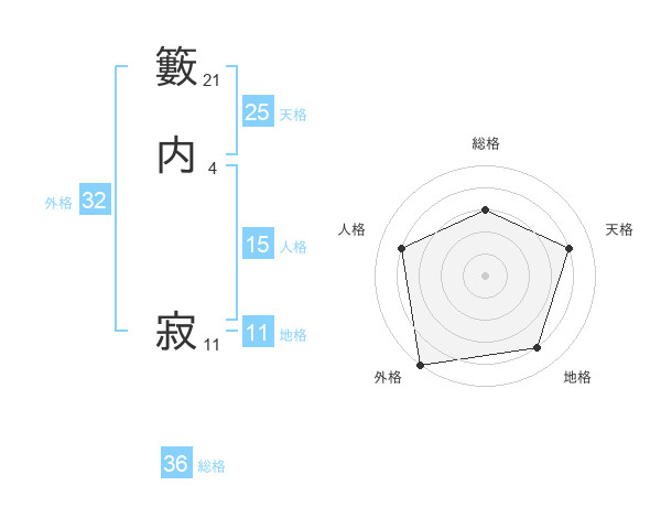 籔内 寂さんの天格は25画の4点!