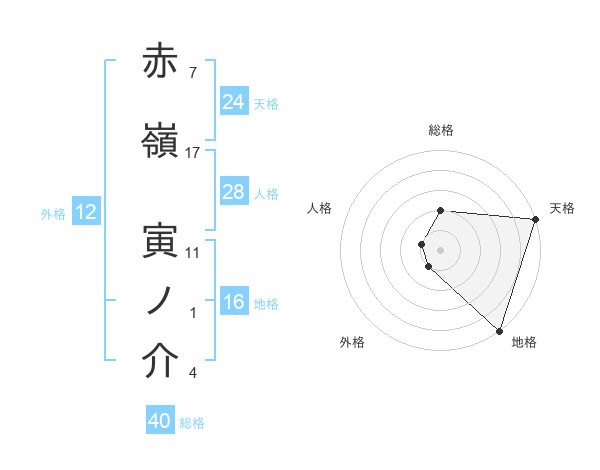 赤嶺 寅ノ介さんの天格は24画の5点!