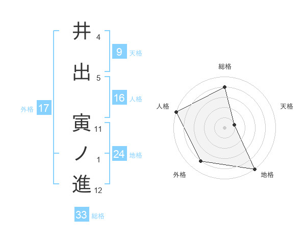 井出 寅ノ進さんの総格は33画の4点!