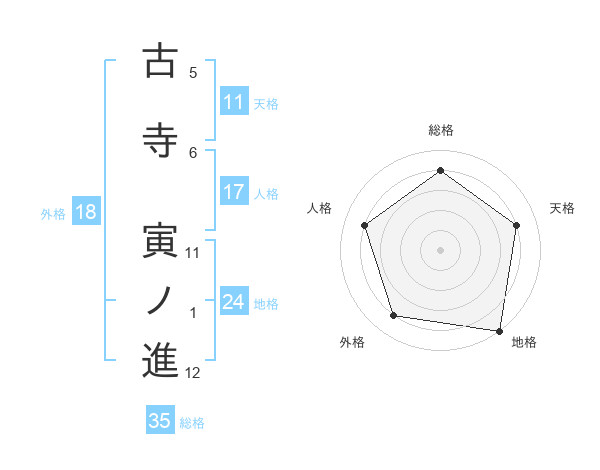 古寺 寅ノ進さんを姓名の画数から五運を鑑定
