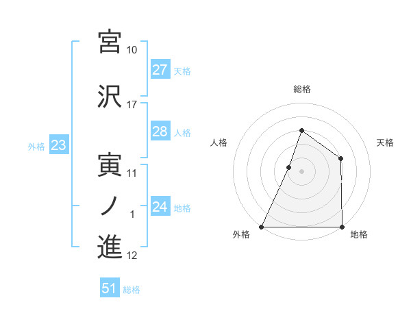宮沢 寅ノ進さんを姓名の画数から五運を鑑定