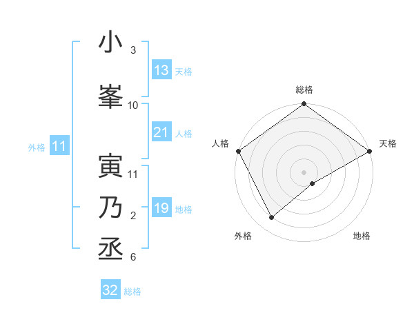 小峯 寅乃丞さんを姓名の画数から五運を鑑定