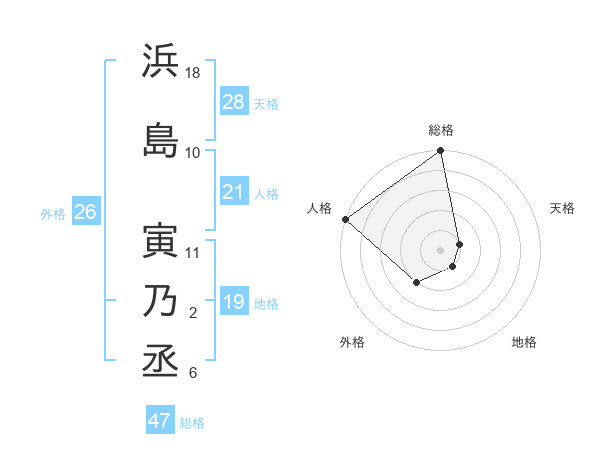 浜島 寅乃丞さんを姓名の画数から五運を鑑定