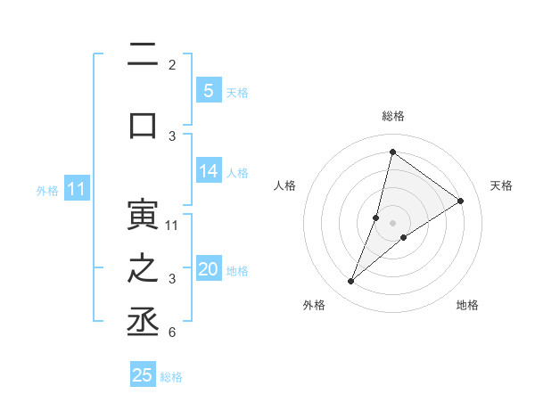 二口 寅之丞さんの外格は11画の4点!