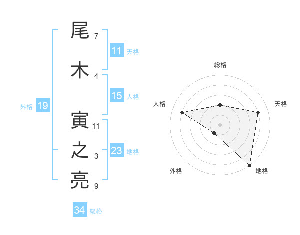 尾木 寅之亮さんの天格は11画の4点!