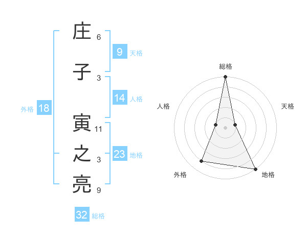 庄子 寅之亮さんの総格は32画の5点!