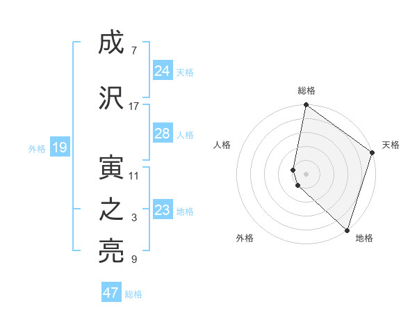 成沢 寅之亮さんの総格は47画の5点!