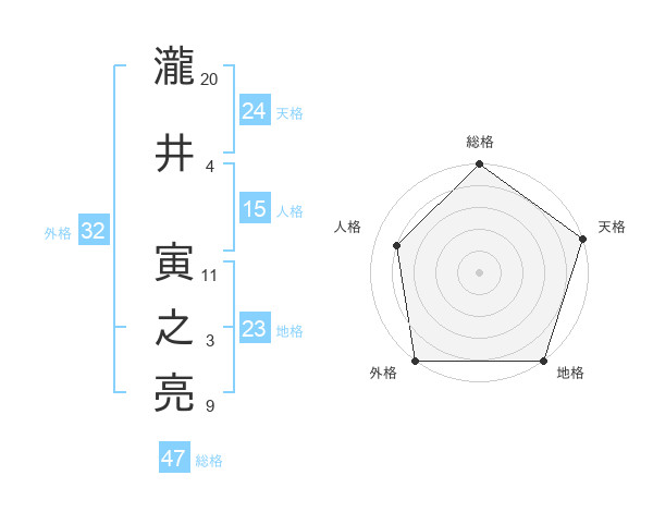 瀧井 寅之亮さんの総格は47画の5点!