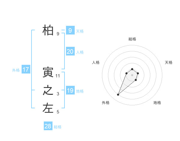 柏 寅之左さんの総格は28画の1点!