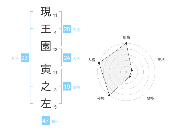 現王園 寅之左さんを姓名の画数から五運を鑑定