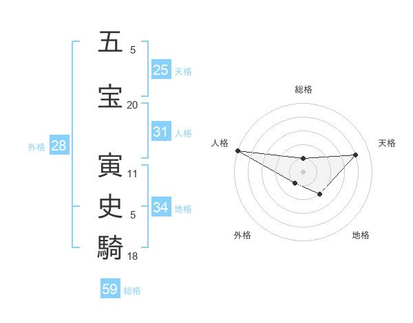 五宝 寅史騎さんの天格は25画の4点!