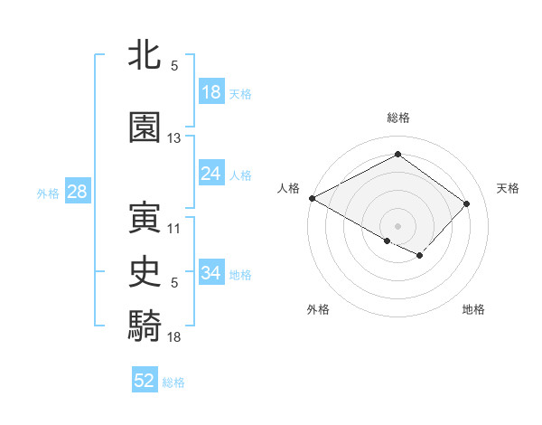 北園 寅史騎さんを姓名の画数から五運を鑑定