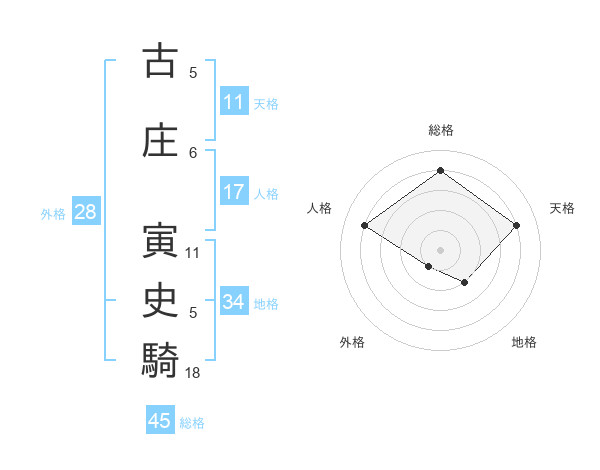 古庄 寅史騎さんの総格は45画の4点!