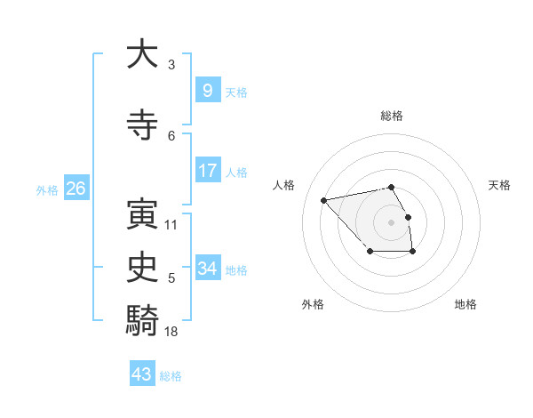 大寺 寅史騎さんを姓名の画数から五運を鑑定