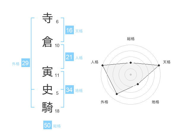 寺倉 寅史騎さんの天格は16画の5点!
