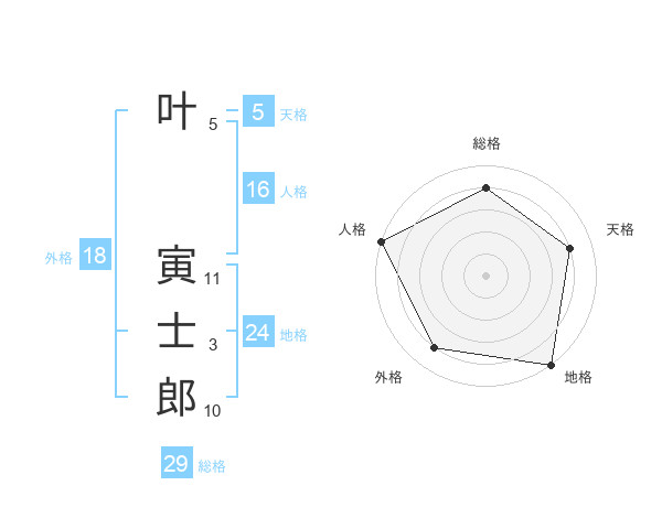 叶 寅士郎さんの総格は29画の4点!