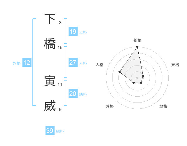 下橋 寅威さんの総格は39画の5点!