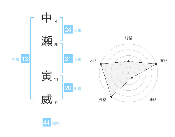 中瀬 寅威さんの地格は20画の1点!