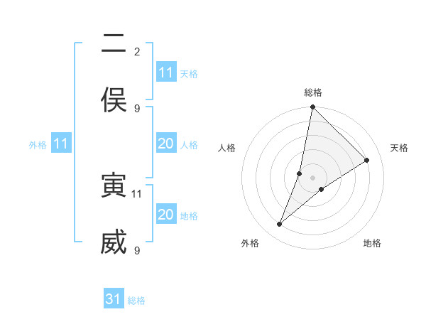 二俣 寅威さんの外格は11画の4点!