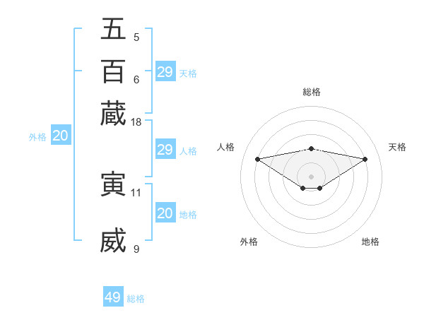 五百蔵 寅威さんを姓名の画数から五運を鑑定