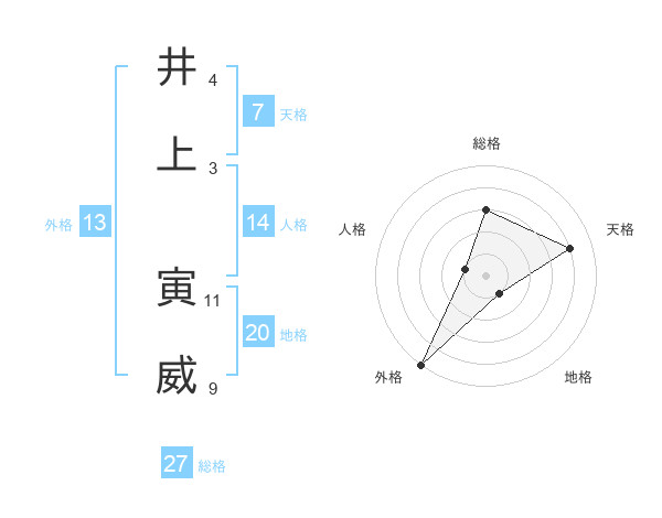 井上 寅威さんの総格は27画の3点!