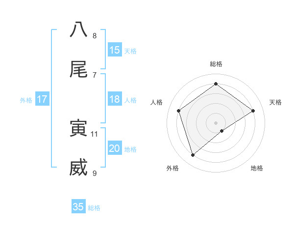 八尾 寅威さんの地格は20画の1点!