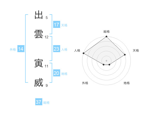 出雲 寅威さんを姓名の画数から五運を鑑定