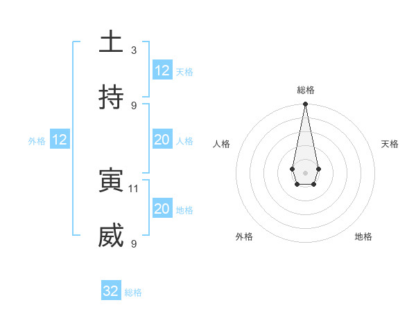 土持 寅威さんの総格は32画の5点!