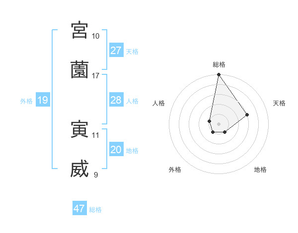 宮薗 寅威さんを姓名の画数から五運を鑑定