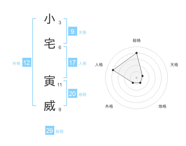 小宅 寅威さんの総格は29画の4点!
