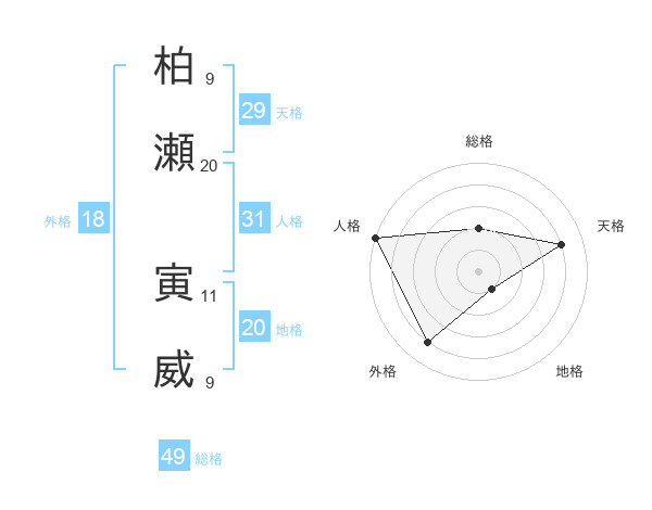 柏瀬 寅威さんの天格は29画の4点!