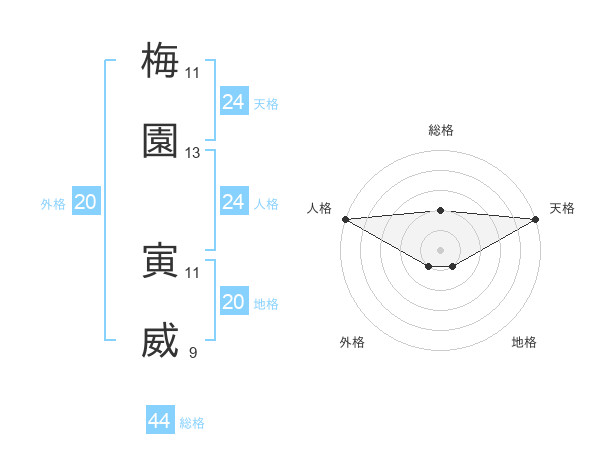 梅園 寅威さんの天格は24画の5点!