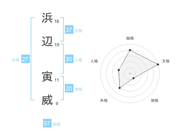 浜辺 寅威さんの天格は37画の5点!