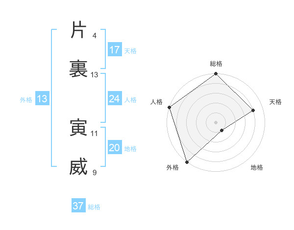 片裏 寅威さんを姓名の画数から五運を鑑定