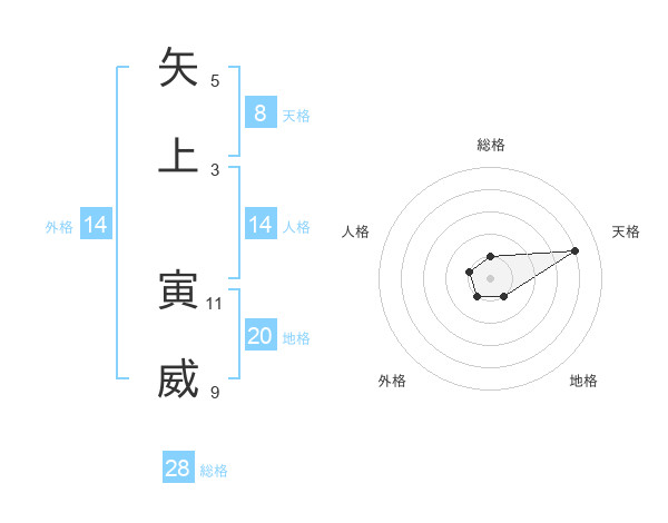矢上 寅威さんを姓名の画数から五運を鑑定